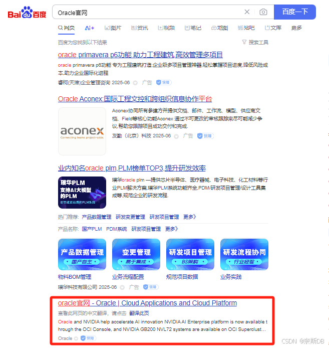 首先在百度上搜索“Oracle官网”,如下图,居然官网不是在第一个,百度广告还是蛮多的😰。