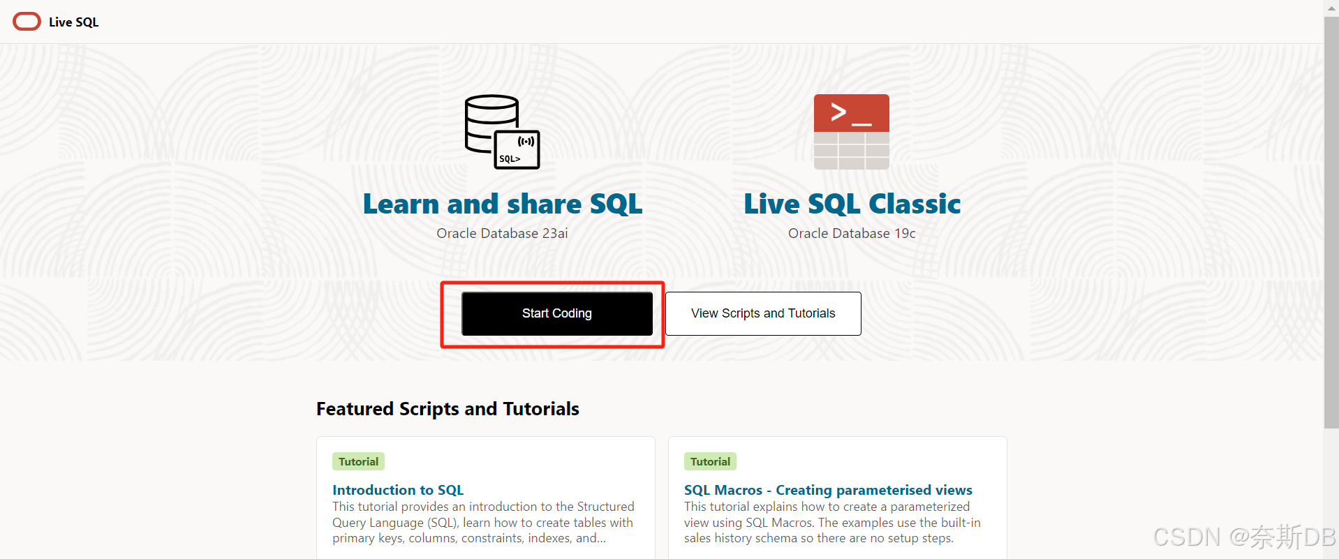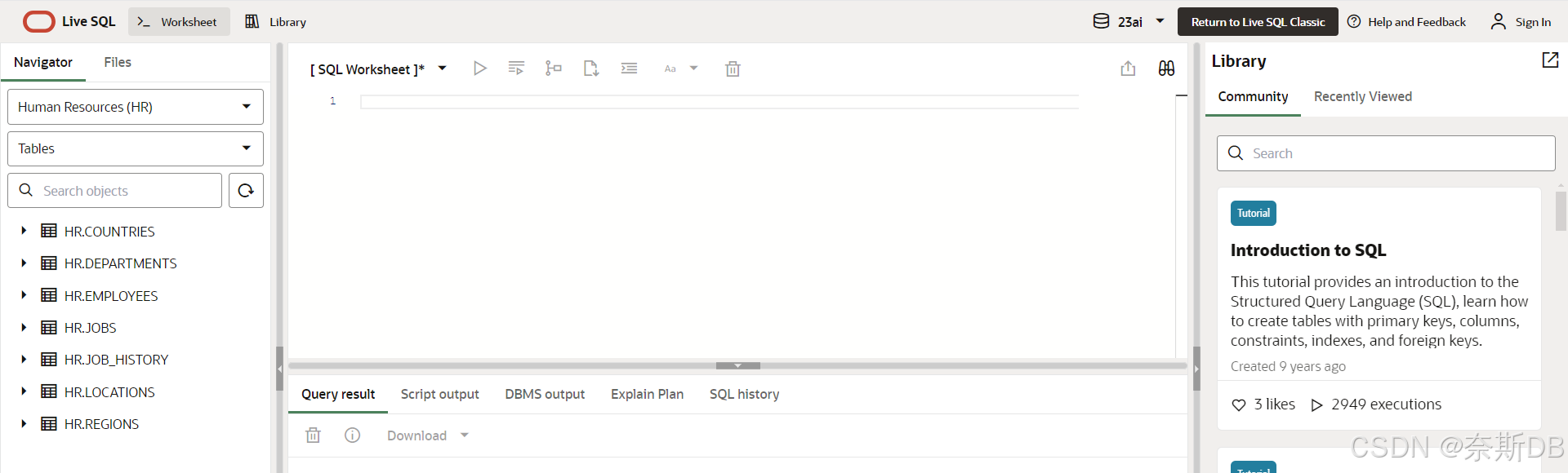 4.Oracle Live SQL:Oracle提供的在线SQL交互平台,可直接在浏览器中运行SQL脚本、学习示例代码。