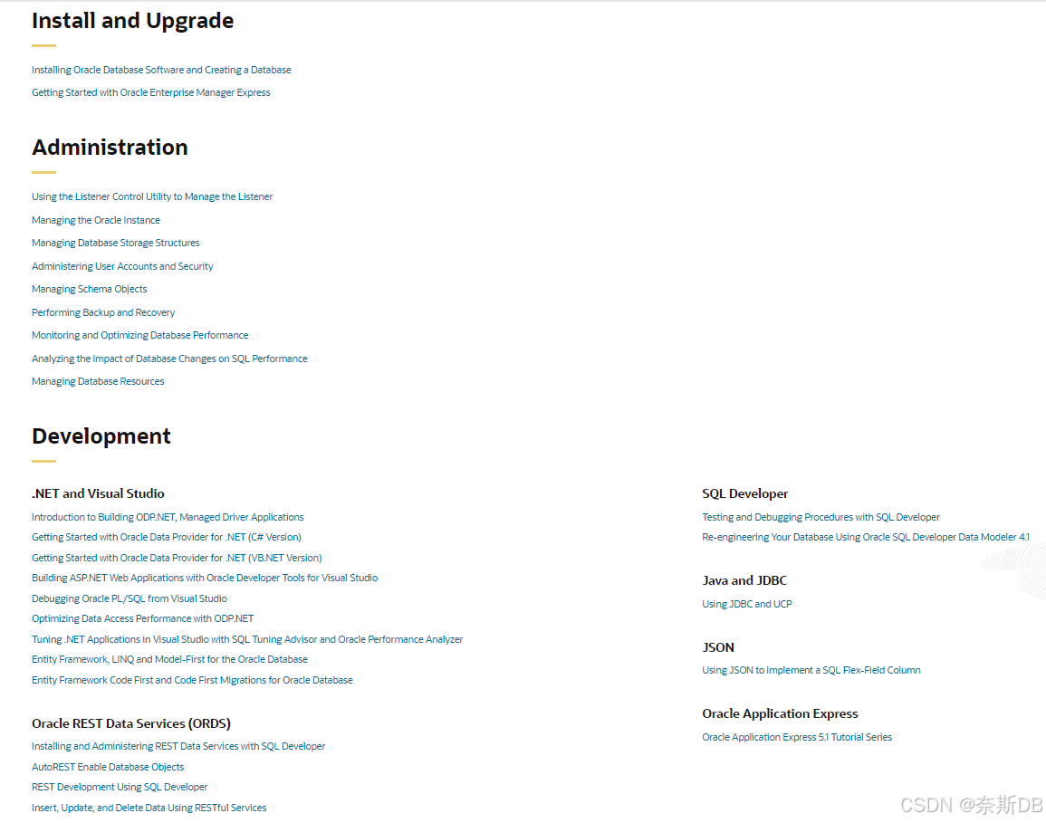 Development:开发相关资源,包括SQL/PLSQL编程、API、应用开发最佳实践。