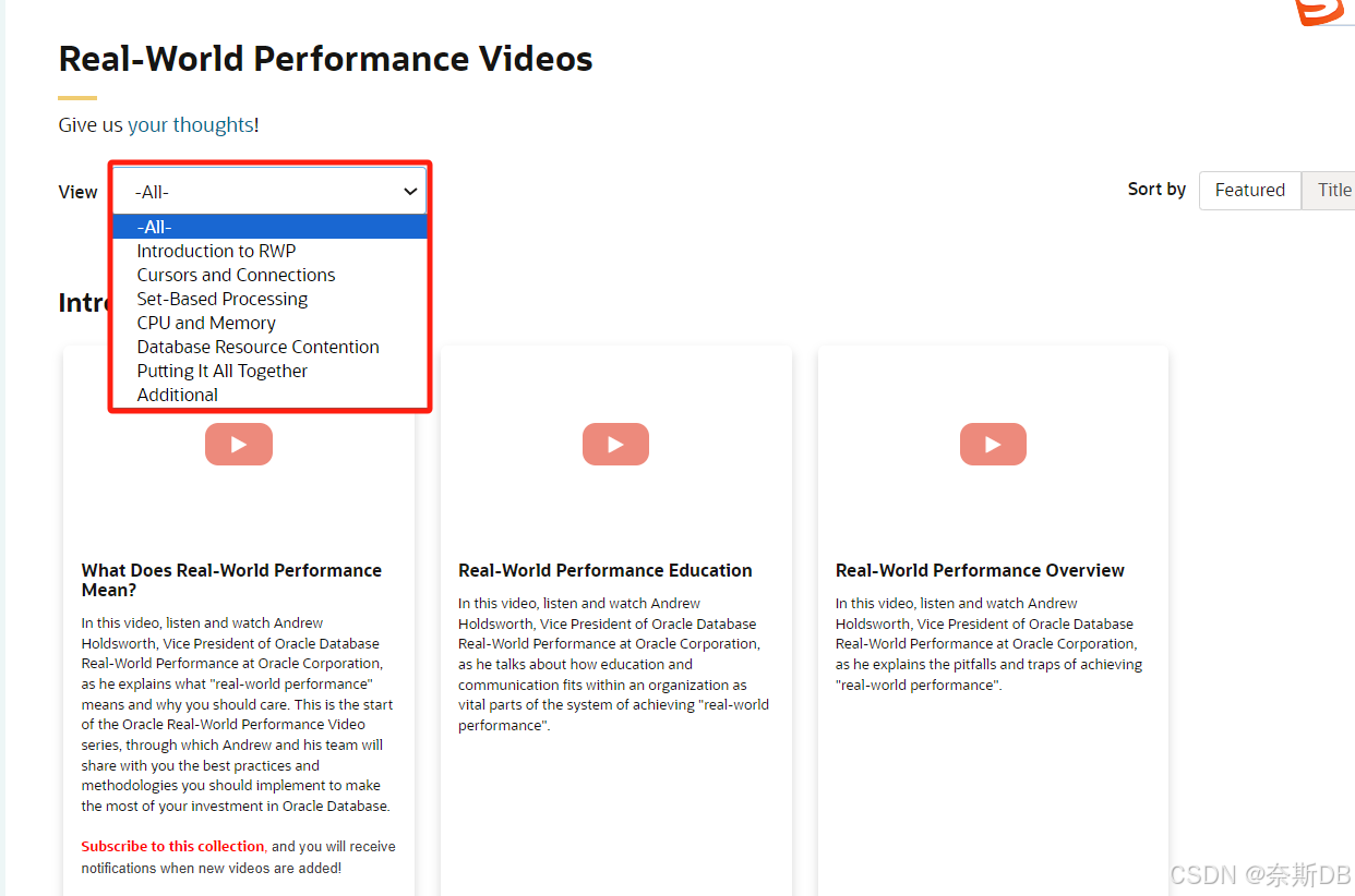 分为Oracle Database Videos、Real-World Performance Videos两个主级目录。