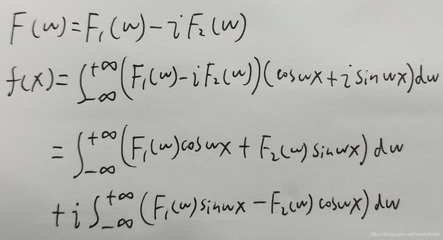 因为F1是偶函数,F2是奇函数,所以也能推导出f的虚部为0,最终得到: