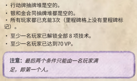 当5个条件中的2个(2人局是3个)满足时,游戏结束。
