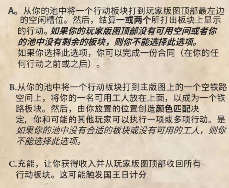 轮到每个玩家时,必须从以下行动选一个执行。