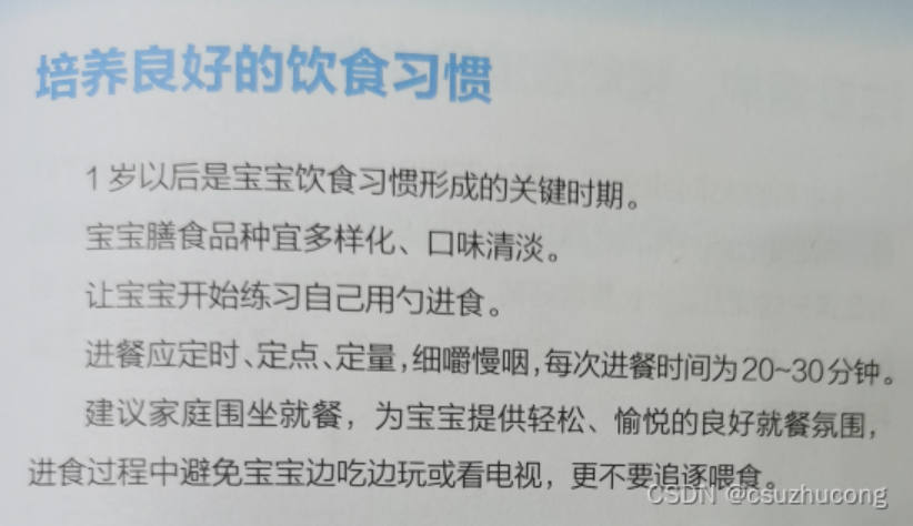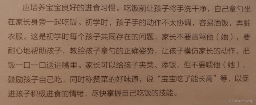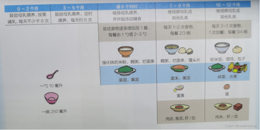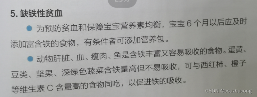(3)6个月开始补充铁,每天吃肉和蛋,吃少量油脂,每周1-2次肝脏或血,1-2次鱼虾或鸡鸭,3-4次红肉(猪牛羊)