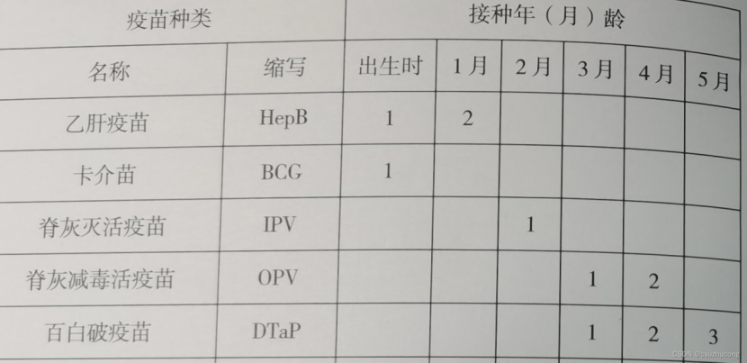 (4)脊灰、百白破、Hib、四联、五联(2月、3月、4月、5月、1.5岁、4岁)