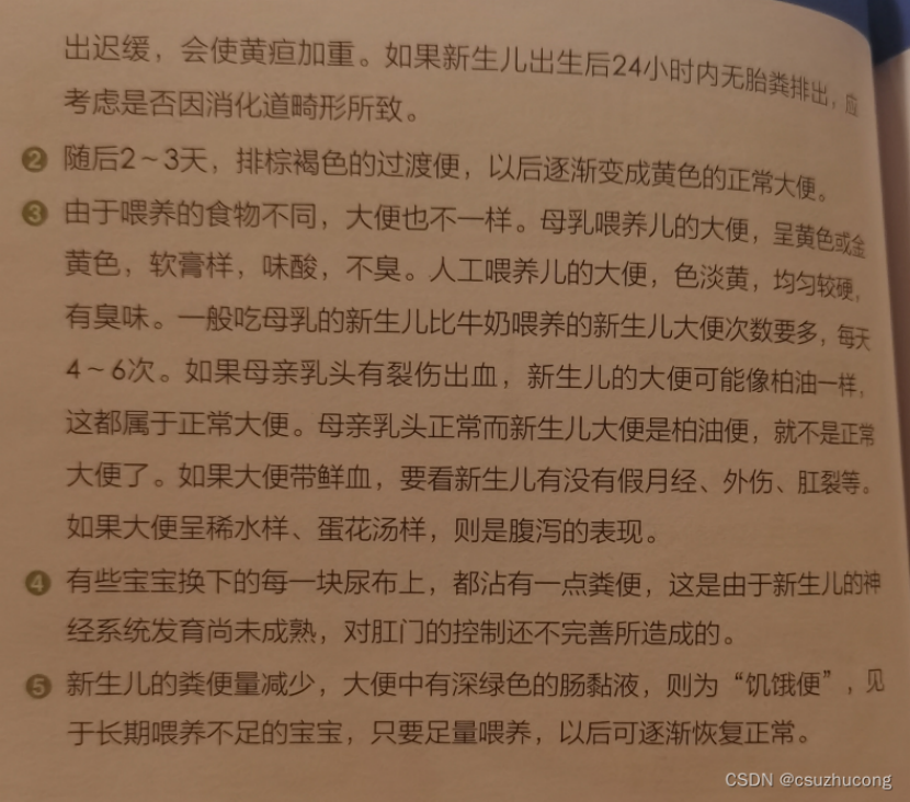 开始吃辅食前,母乳喂养的婴儿的大便一般非常松软, 甚至稀得像米糊一样。配方奶喂养的婴儿的大便通常呈褐色或黄色,质 地比母乳喂养的婴儿的大便黏稠,但黏稠度不应超过花生酱。