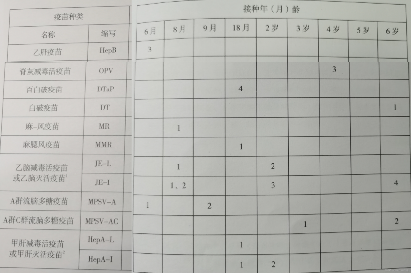 (2)甲肝、乙肝、2联(出生、1月、6月、1.5岁、2岁)