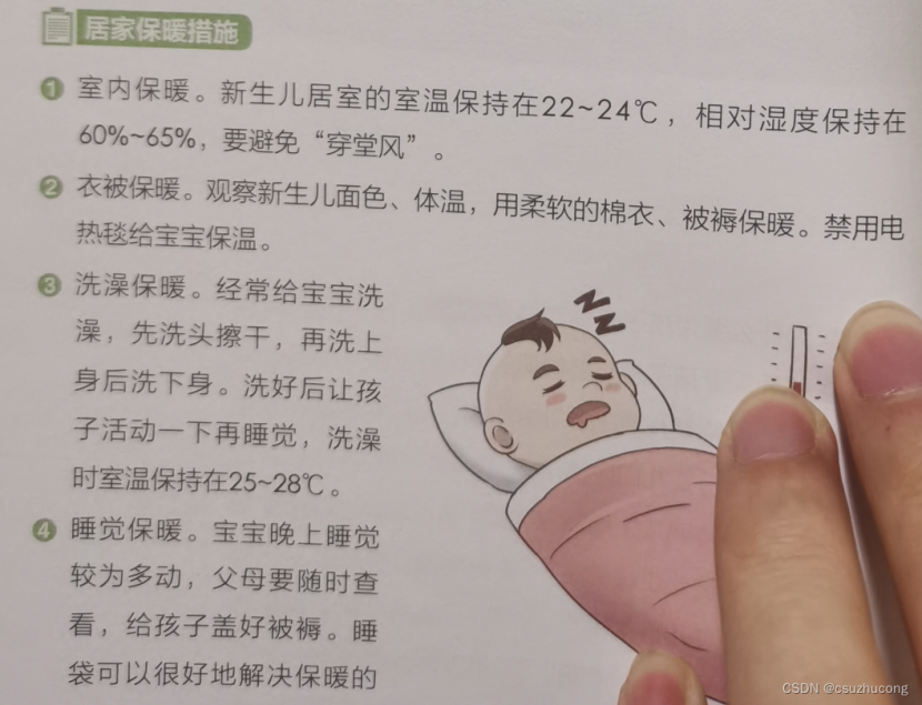 热天时,你可以只给婴儿穿一层薄衫。一 个很实用的参考方法是,同等温度下,婴儿的衣物应该比成人觉得舒适 的衣物厚度多一层。
