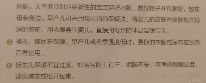 除非温度非常高(24℃以上),否则新生儿都要穿几层衣物来保 暖。一般最好先给婴儿穿一件贴身的小上衣,下面包上尿布,然后套一 件睡衣或罩衫,最后用婴儿抱毯将整个身体包起来。