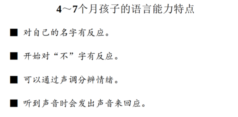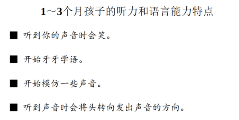 婴儿在前几个月就具备听觉,而且有一定的理解能力,但是发音部位六个月才会开始发育,一岁左右开始能说完整的词。