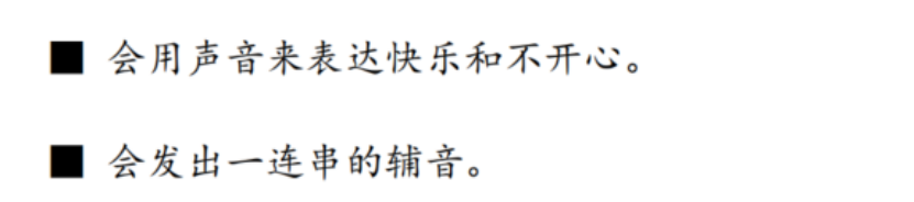 在第1个月听觉完全成熟。能识别某些声音,听到熟悉的声音或人声时会扭头去看。