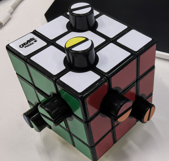 除了和三阶魔方对应的部件之外,还多了12个按钮,每个按钮由2个半圆组成。