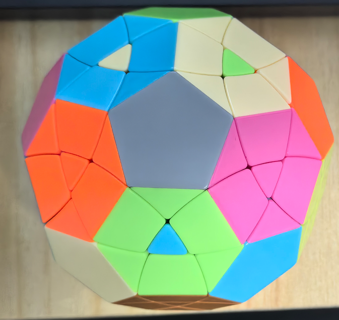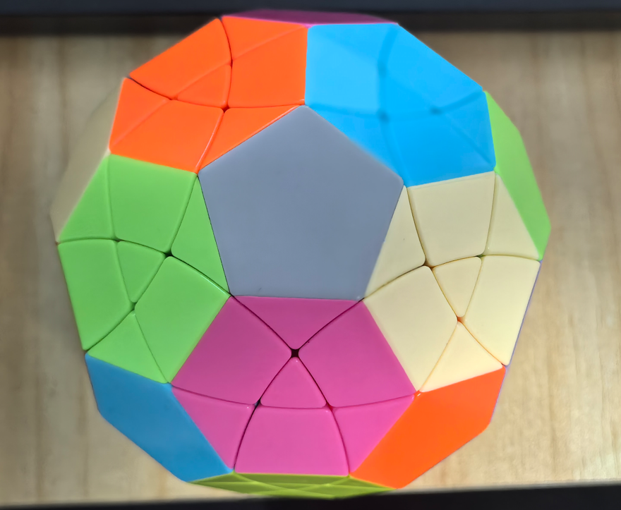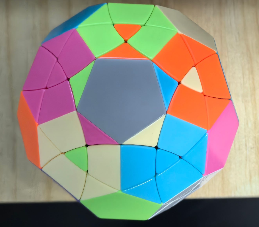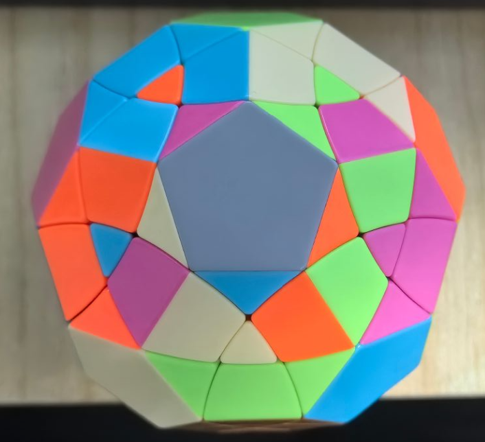 至此,魔方复原了一半,剩下的10个六边形面,有5个和起始面的对立面相邻,有5个不相邻
