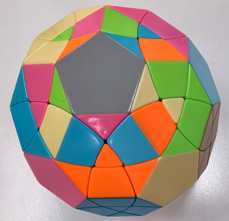 一共有12个五边形面,每个五边形面只有1个五边形中心块,每个五边形层由1个五边形中心块+5个棱块+5个三角形中心块组成。
