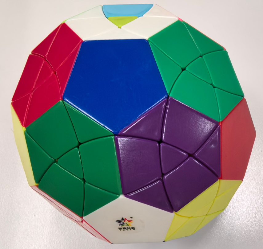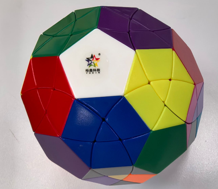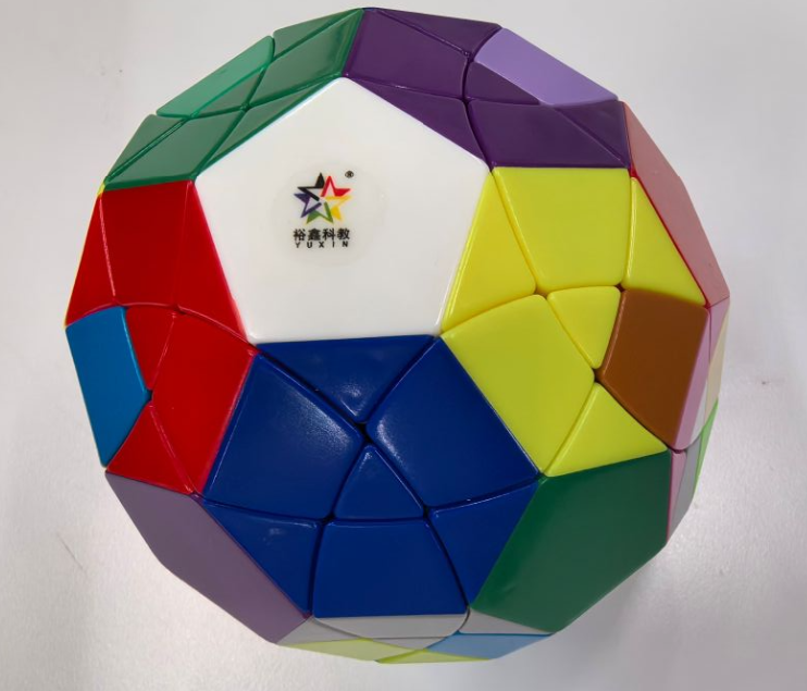 一共有20个六边形面,每个六边形面由1个三角形中心块+3个棱块+3个中心块的小三角形组成