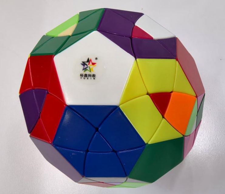 12轴足球魔方少一个“五魔方复原顶面5个角块的朝向”的步骤,多一个“12轴足球魔方调整中心块的朝向”的步骤