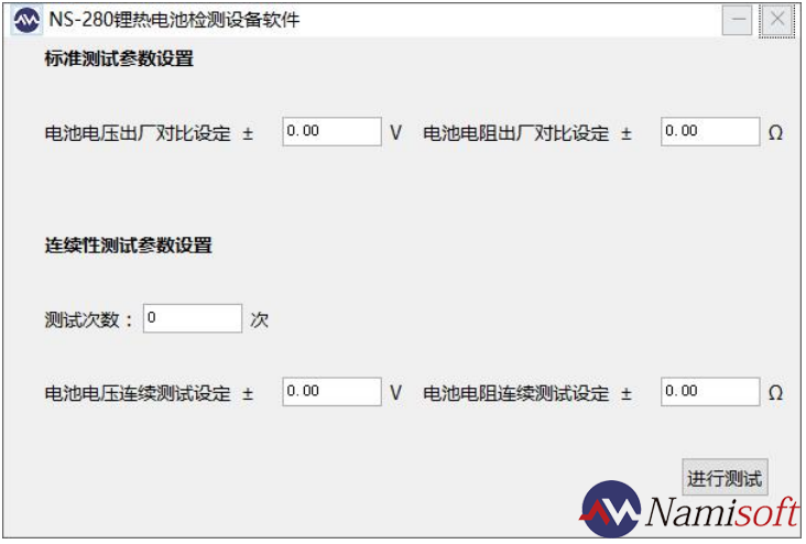 参数设置页面根据需求分为两个部分:标准测试项目所需的参数以及进行连续性测试电池项目时所需参数。