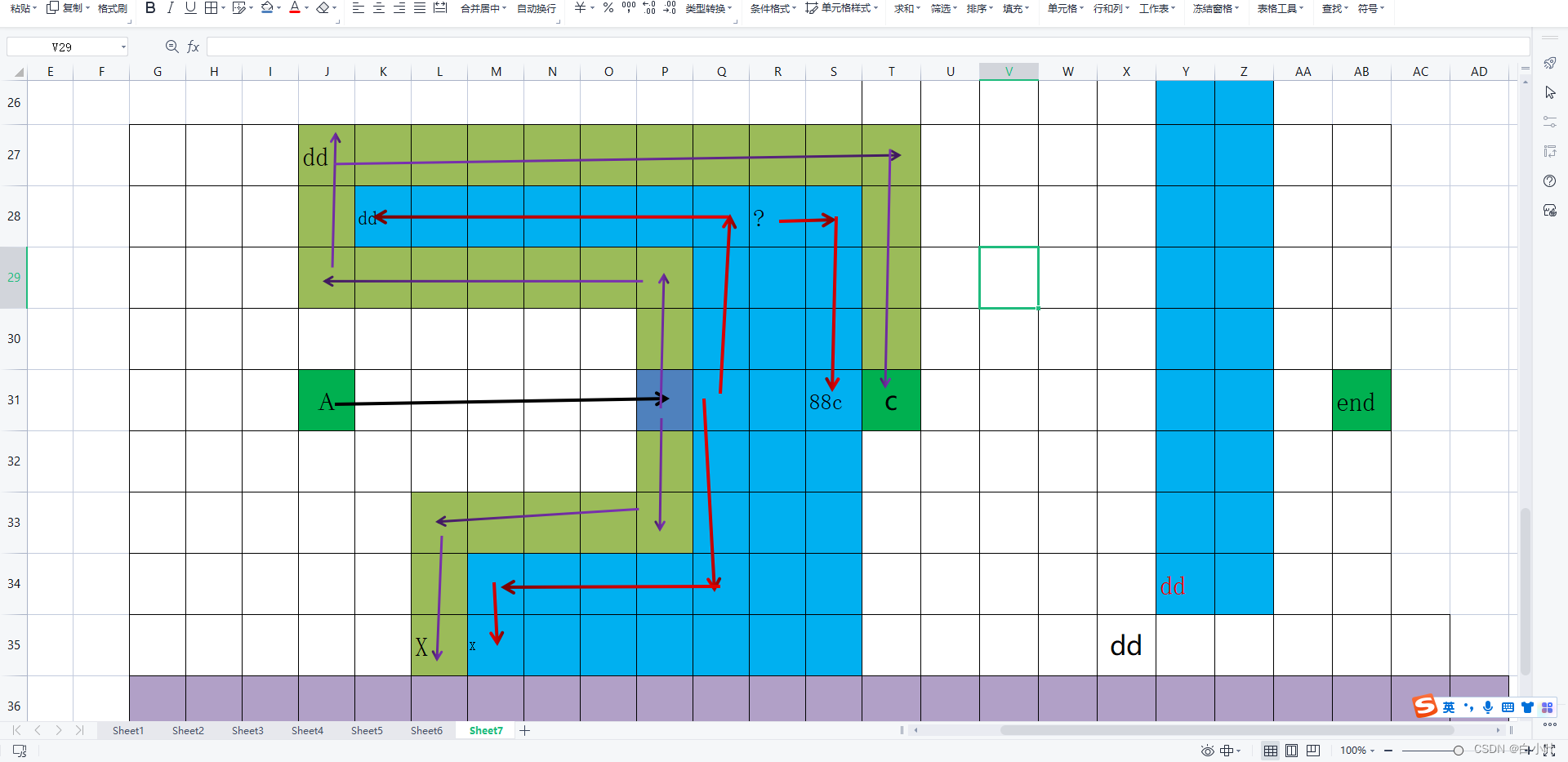 #障碍内圈的是 起码大于2 格子组成,不过用线性规划就可以解决任意类型的障碍,实际应用是应该没有这种单格障碍。。。。。。。哈哈哈,不然只能外圈走,内圈两头都是死路