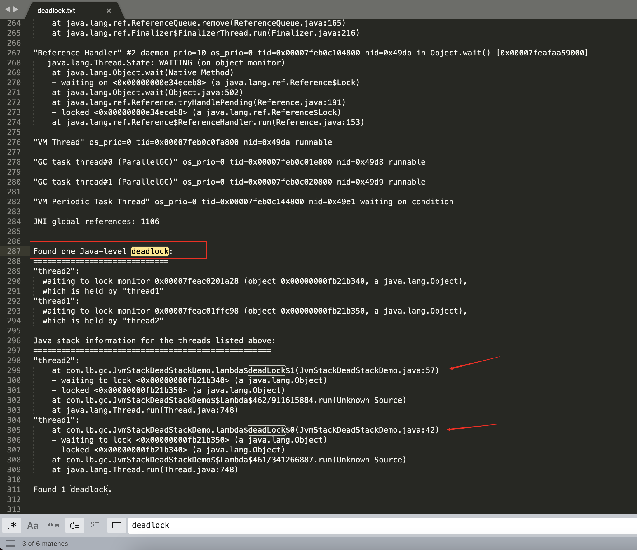 jstack 18899 > deadlock.txt