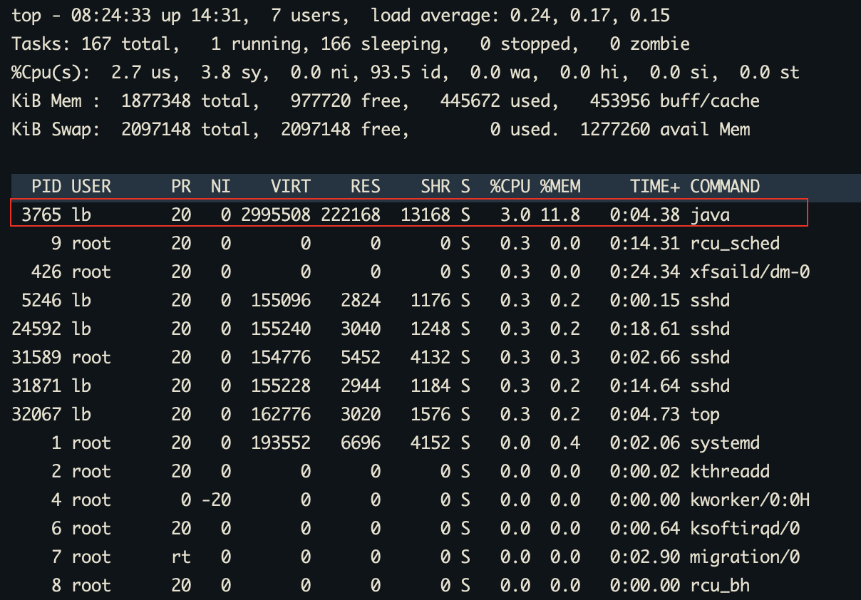 top -Hp 3765