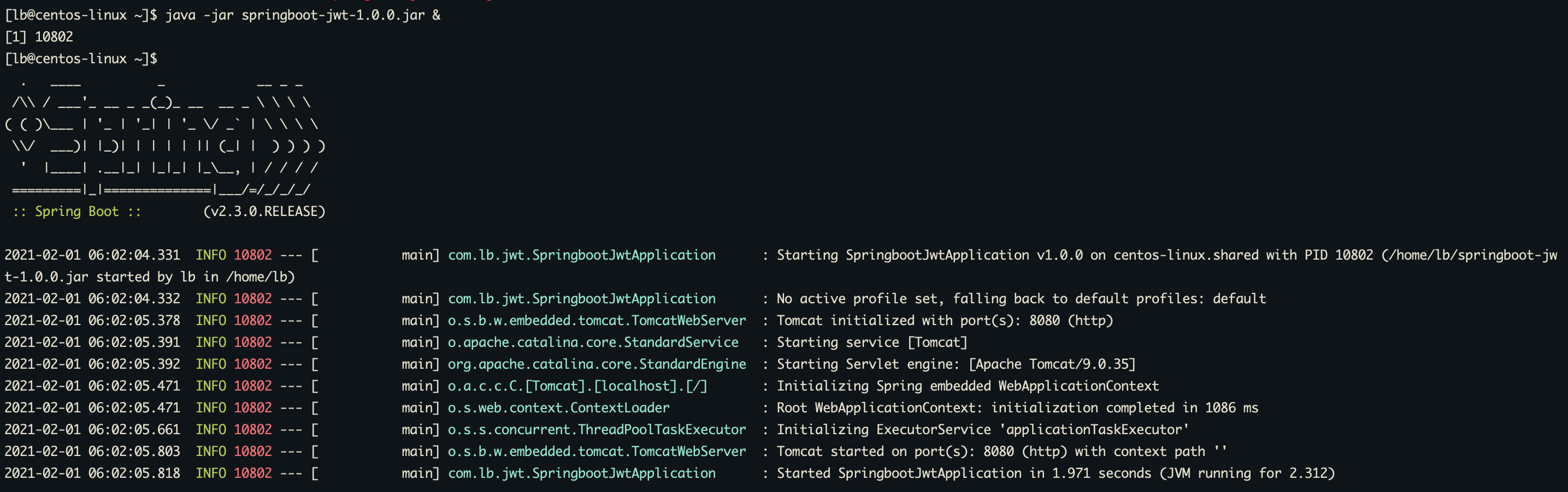 java -jar springboot-jwt-1.0.0.jar &
