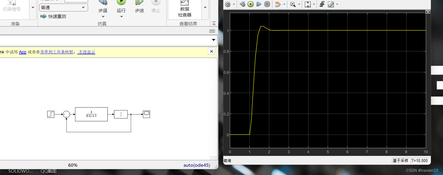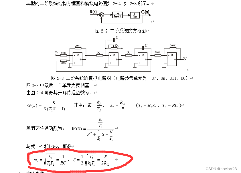 这个是1.1的,图就是按照2-2的方框图搭建。图中参数计算就是我画红圈的那个部分给你Wn和阻尼系数了那还不好算?Wn = 10,阻尼系数为:0.2