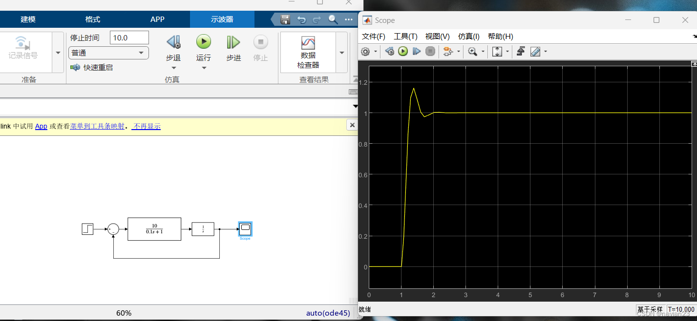 下面的这个是1.2也就是Wn=10,阻尼系数为2
