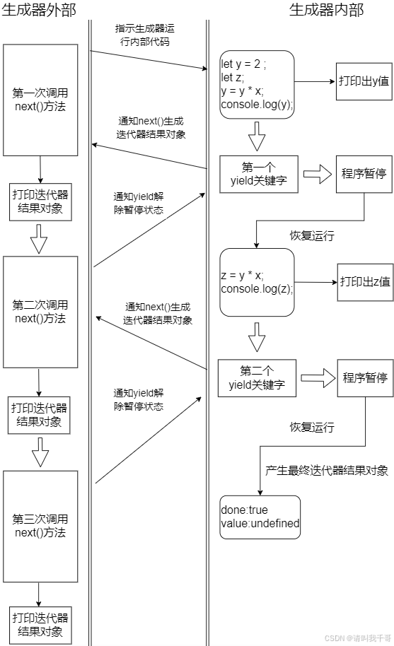 let result = gen.next();//调用生成器对象的next()方法,返回一个迭代器结果对象