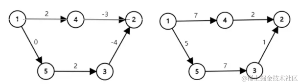 对于上图,我们惊奇地发现,原先 1 1 1 到 2 2 2 的最短路是 1 → 5 → 3 → 2 1\rightarrow5\rightarrow3\rightarrow2 1→5→3→2,结果变成正的之后最短路变成 1 → 4 → 2 1\rightarrow4\rightarrow2 1→4→2 了,寄。
