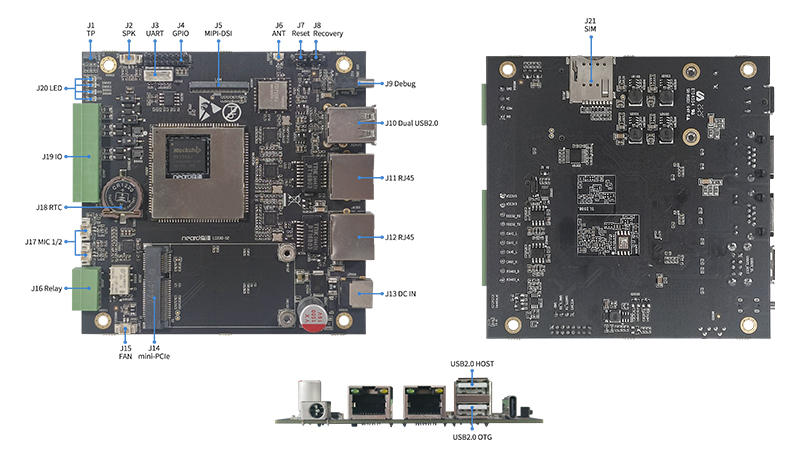 1 路 mini-PCIe 接口:支持 4G/5G 模块扩展,内置 Micro SIM 卡座。