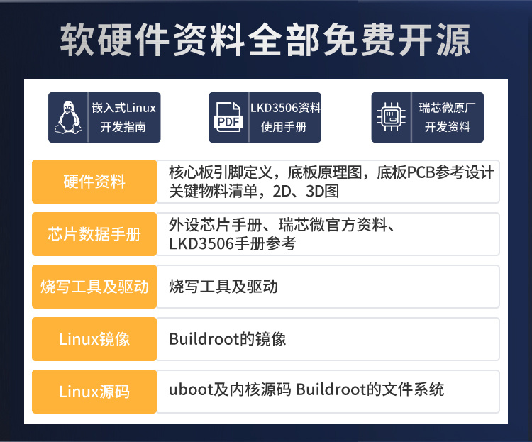 为支持开发者快速上手,LKD3506 提供完善的软硬件开发资源: