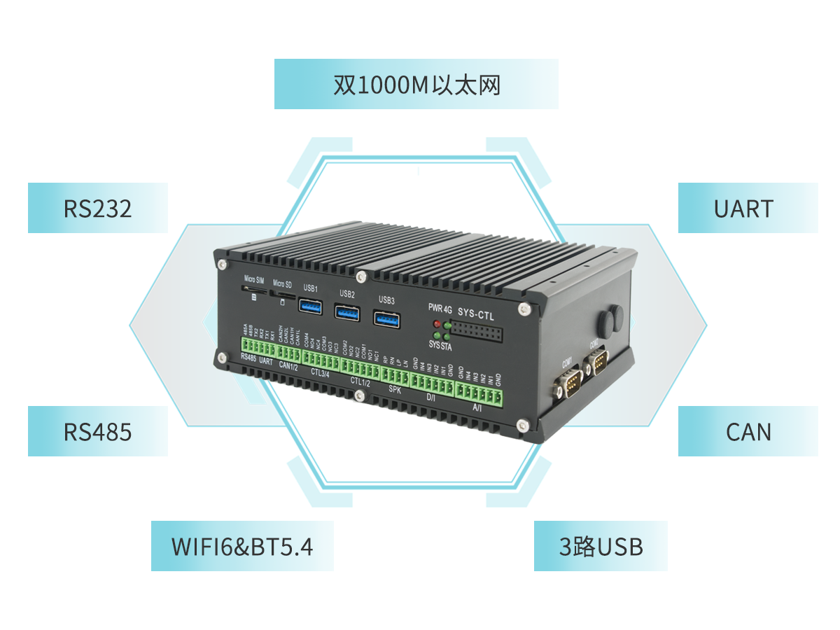在工业 DTU、智能网关、机器人、智慧能源等场景,外设接口远比算力重要:网络接口:双千兆 / 2.5G / RGMII / SGMII,串口:RS232 / RS485 / CAN / UART,无线扩展:WIFI/BT、4G/5G 模块,多 USB、SPI、I2C 等工控常见外设。