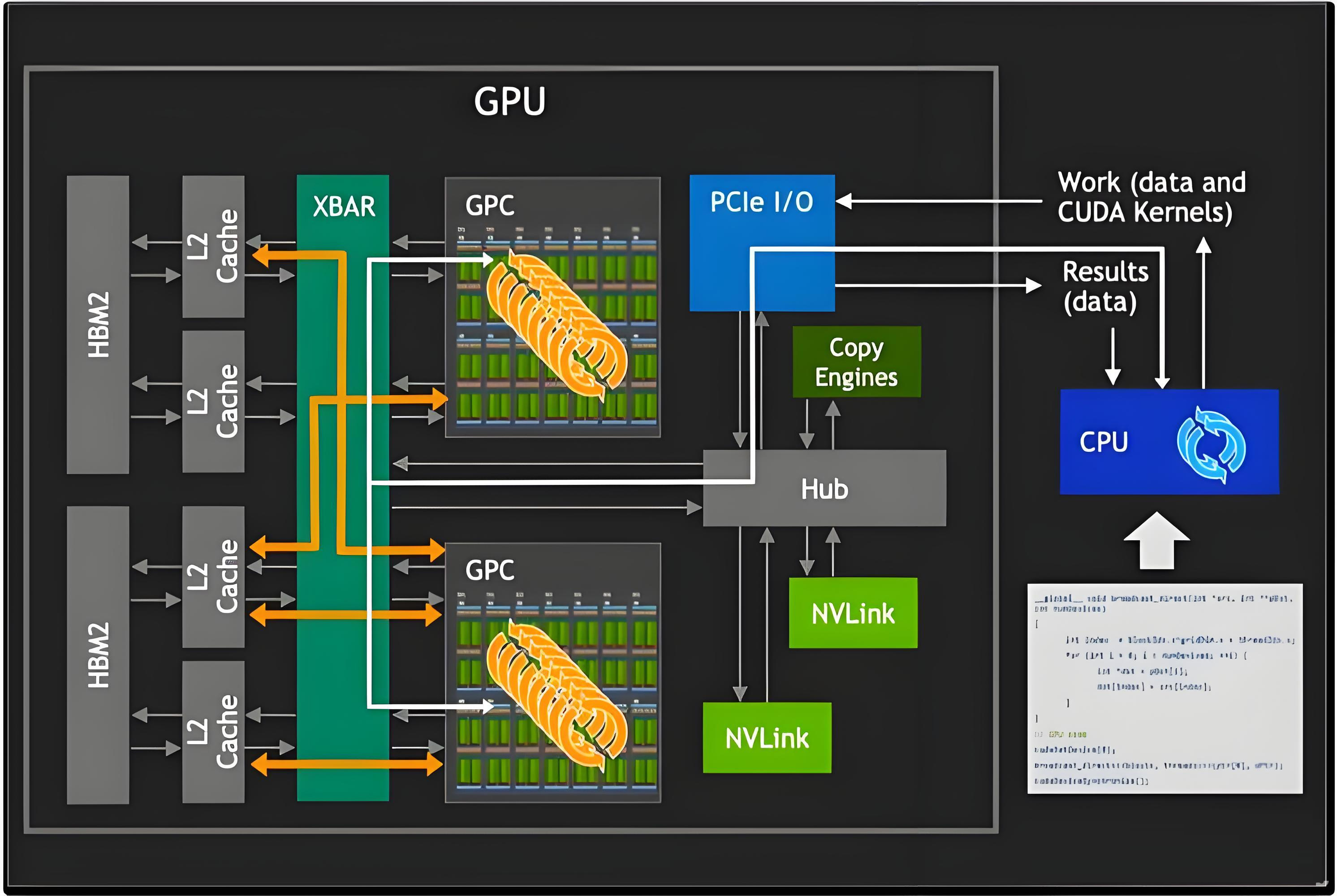 GPU 内部包含数百至上万个计算核心(如 CUDA Cores / Stream Processors),通过 SIMT (Single Instruction Multiple Threads) 机制,实现对大规模数据的并行处理。