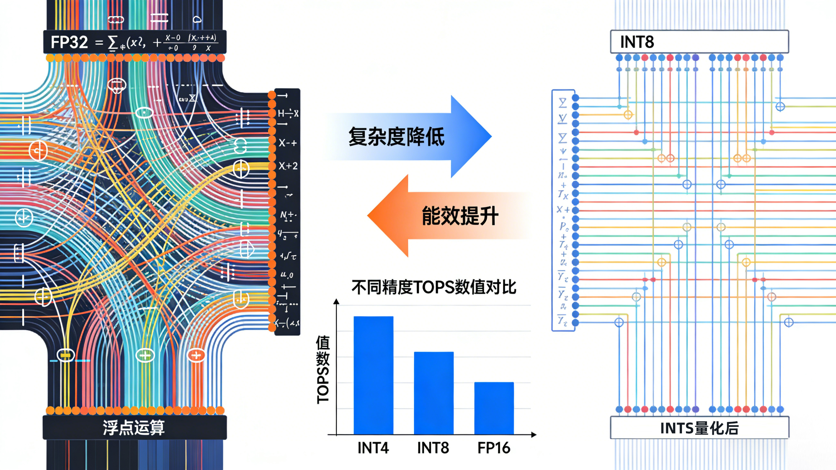 模型量化: 将复杂的浮点运算转换为简化的 INT8 整数运算,极大地降低了计算复杂度。