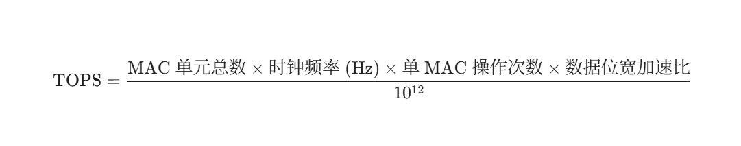 TOPS衡量的是峰值理论算力。在实际应用中,由于数据传输、内存限制和模型结构等原因,NPU的实际有效算力往往会低于这个峰值。