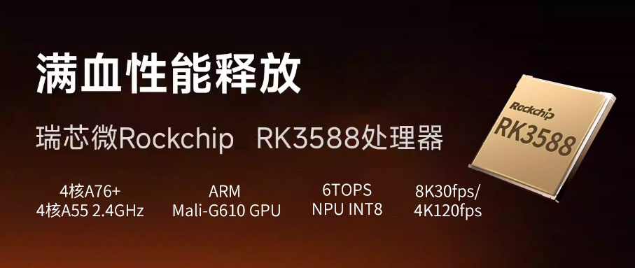 Neardi Pi 4-3588 搭载瑞芯微(Rockchip)旗舰级 RK3588 芯片,采用 8nm 先进制程,将高性能与极致功耗控制完美结合 。