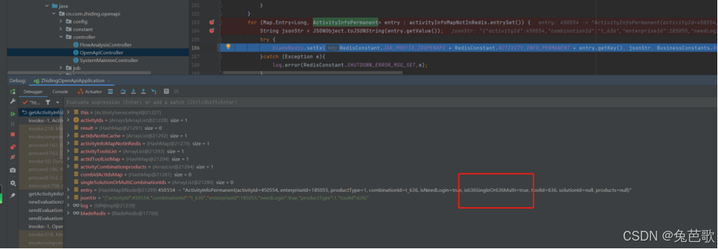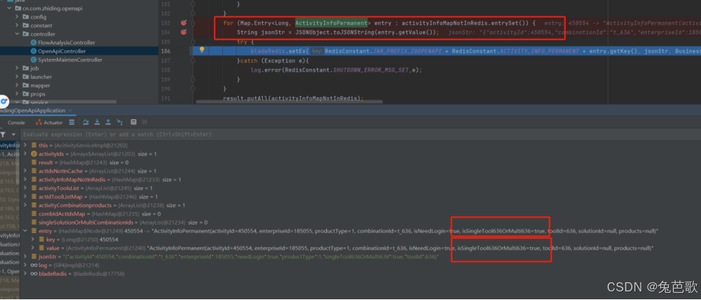 可以看到上面的entry里,is636xxxxx字段是有值的,但下面的jsonStr里没有这个字段。