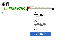 然后会出现 全月应纳税所得额 等于 请点击选择。 点击等于,会出现判断类型,选择“小于等于”: