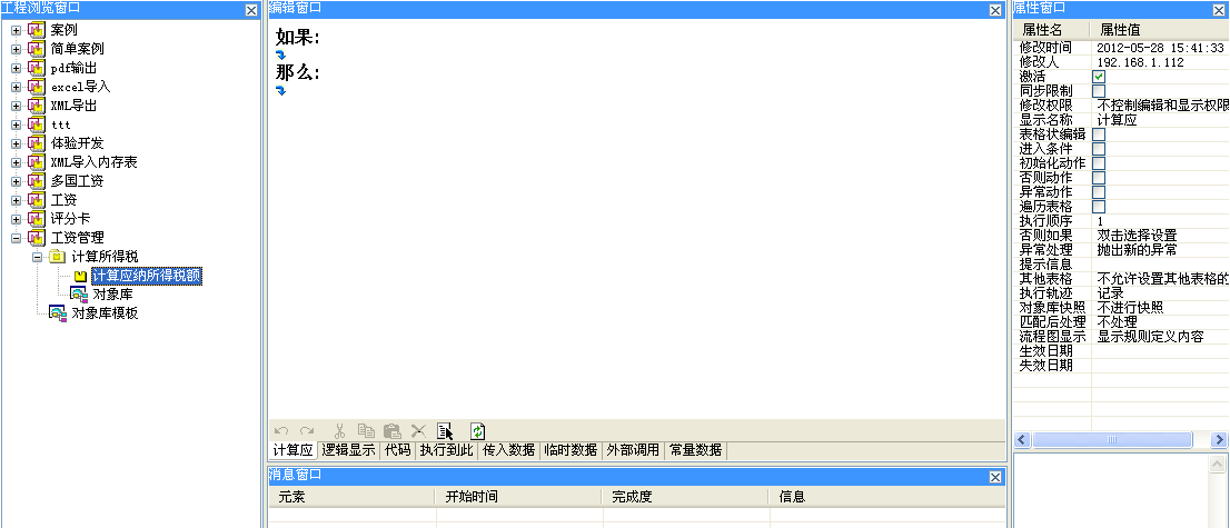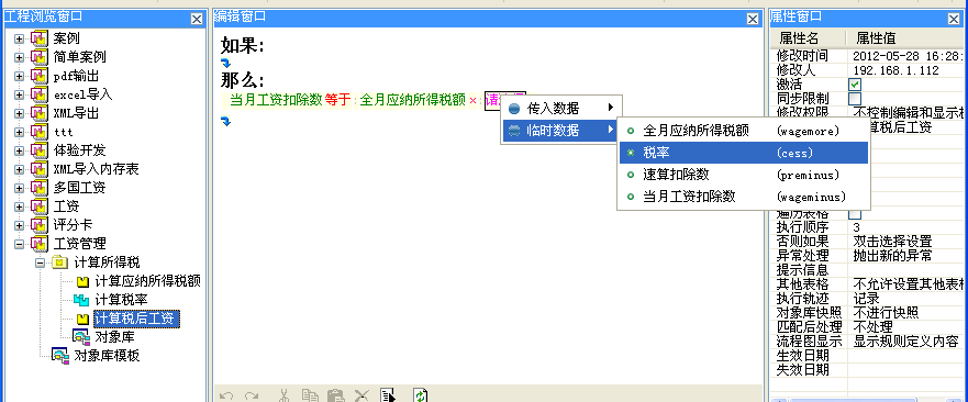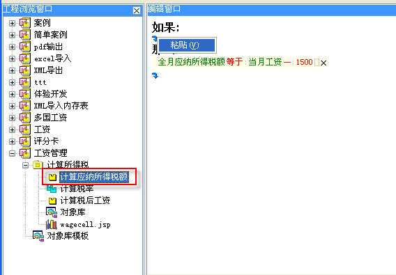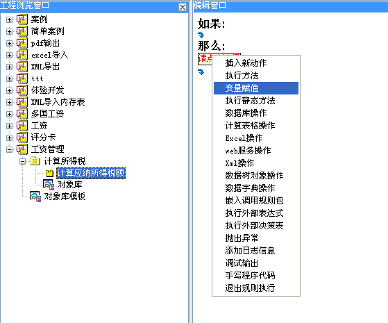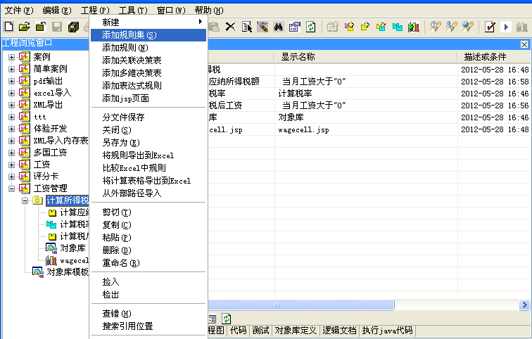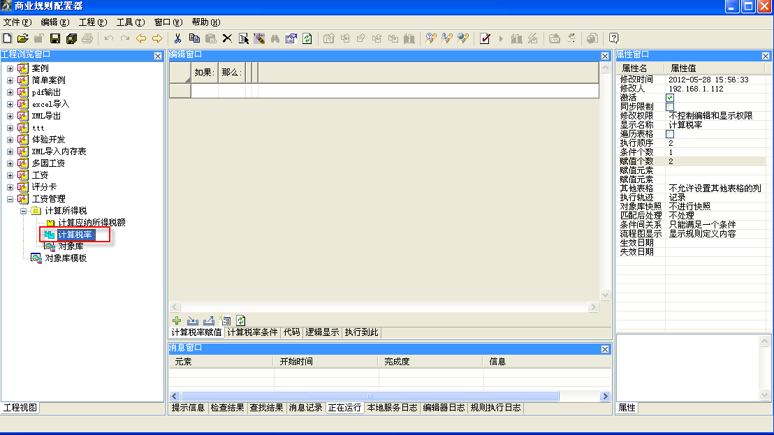 按照以上的设计,我们来设置计算所得税规则包,并且设置其对象库以及业务规则。