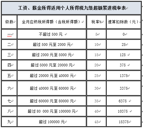 3.根据税率和速算扣除数,得到当月工资扣减数,最后根据扣减数,得到应发工资。