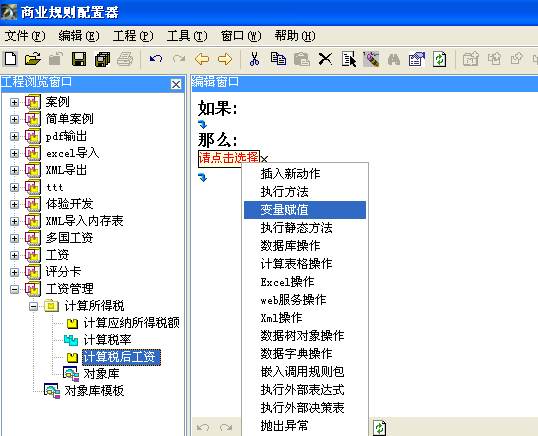 将其规则名称修改为“计算税后工资”,然后我们设置规则的两个赋值方法。