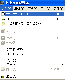 首先启动规则配置器,启动后点击“新建规则工程”,如下图所示: