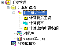 依次将“计算应纳税所得额”规则、“设置税率”决策表、“计算税后工资”规则拖动到“月工资大于零”规则集下面。也可以通过剪切、粘贴的方式,移到规则集下面: