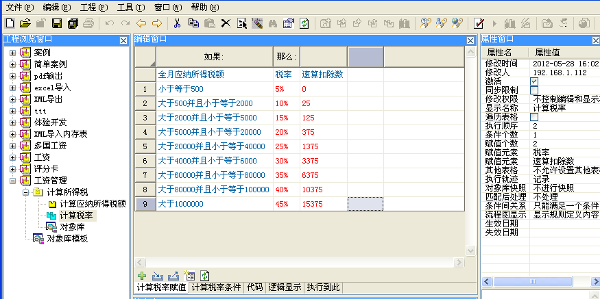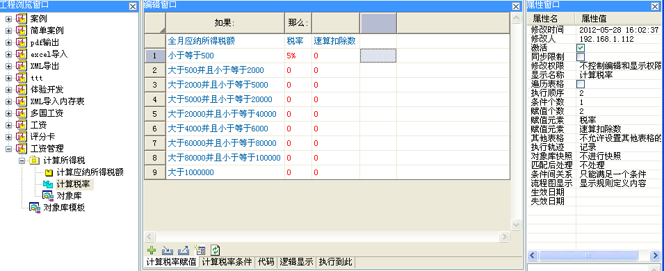 我们通过规则配置器来新建一个计算所得税的规则包,然后我们通过web方式去访问。此规则包的逻辑基本考虑如下: