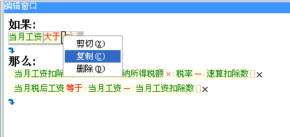 因为我们已经在“计算税后工资”中已经设置了 当月工资大于0 这个条件,因此我们只需要将 这个条件复制到 “计算应纳税所得额”规则中就可以了。