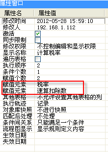此决策表是根据应纳税所得额,得到税率和速算扣减数,因此应纳税所得额为条件,税率和速算扣减数为赋值元素。因此首先我们在“设置税率”决策表的属性窗口中,将其赋值元素的个数设置为“2”,如下所示: