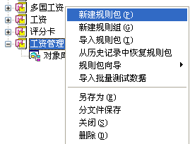 鼠标右键点击在工程视图窗口的规则工程,出现弹出式菜单,选择其中的“新建规则包”菜单项: