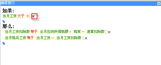 同时我们需要将原先在“计算应纳税所得额”规则以及“计算税后工资”规则中设置的条件删除,直接点击条件后面 × 按钮删除就行。