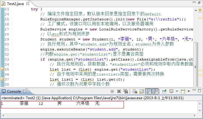 同理,任何的其他java类,只需加入上述的代码,即可完成调用规则包的工作。