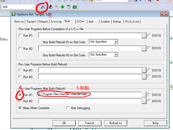 保存内容,复制程序路径,并粘贴入Run User Programs After Build/Rebuild框中